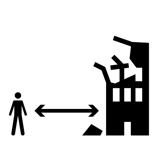Fare attenzione mentre si abbandona l’edificio (potrebbero cadere parti di muro, travi del tetto, tegola ecc.).